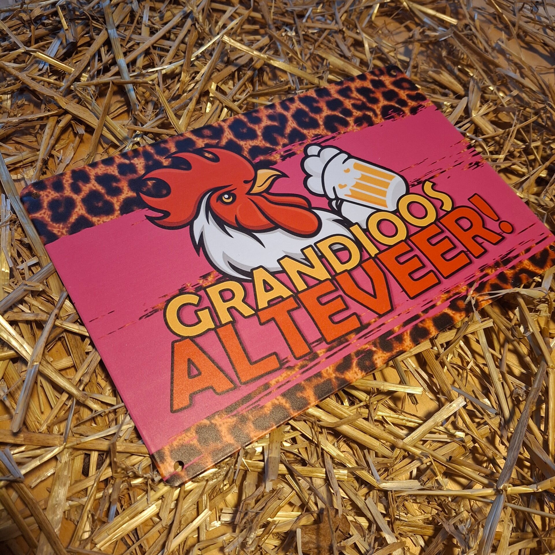 Metalen wandplaat van het Grandioos Alteveer Logo in het veel besproken 2025-thema. Mooi voor in de kroeg of boven het bed (als u de partner zover kan krijgen). Afmeting is ongeveer 30 cm x 20 cm. Voorzien van 4 gaatjes om hem op te hangen.